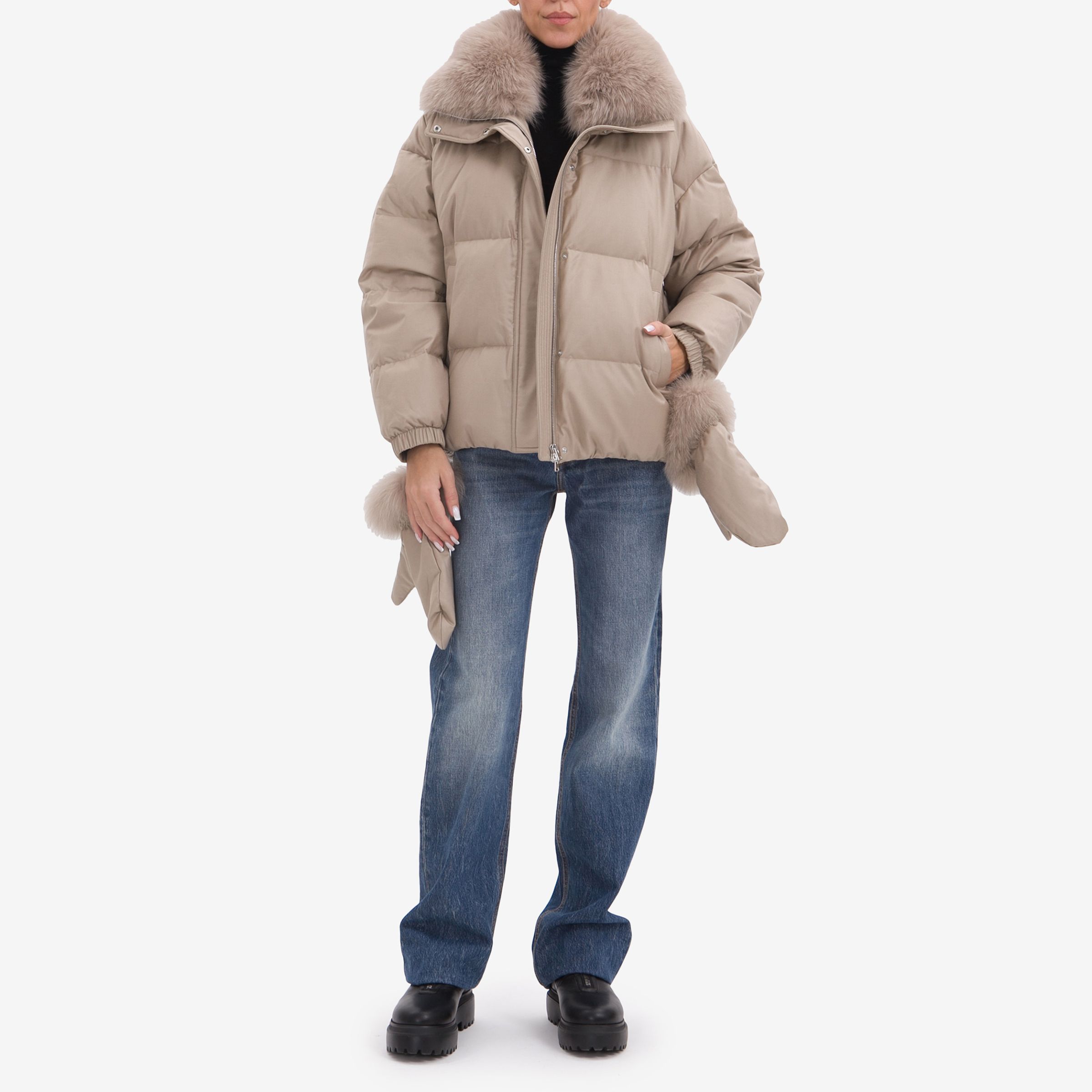 Мех:съёмный воротник - 100% мех лисы