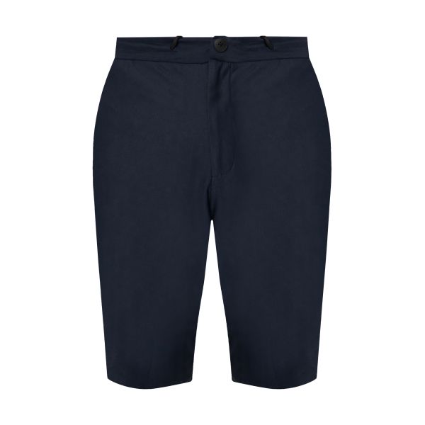 Спортивные шорты Tombolini прямого кроя средней длины. Фактурная ткань с рисунком “елочка”. Посадка на поясе с пуговицей и кулиской. Ширинка под ветрозащитной планкой. Модель дополнена карманами.
