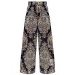 Брюки палаццо со сплошным флористическим орнаментом. Высокая посадка на эластичном поясе с завязками. Брендовый патч на брючине. Врезные карманы по бокам. Рост модели: 177 см. Параметры: 86/67/93. Размер на модели: 2